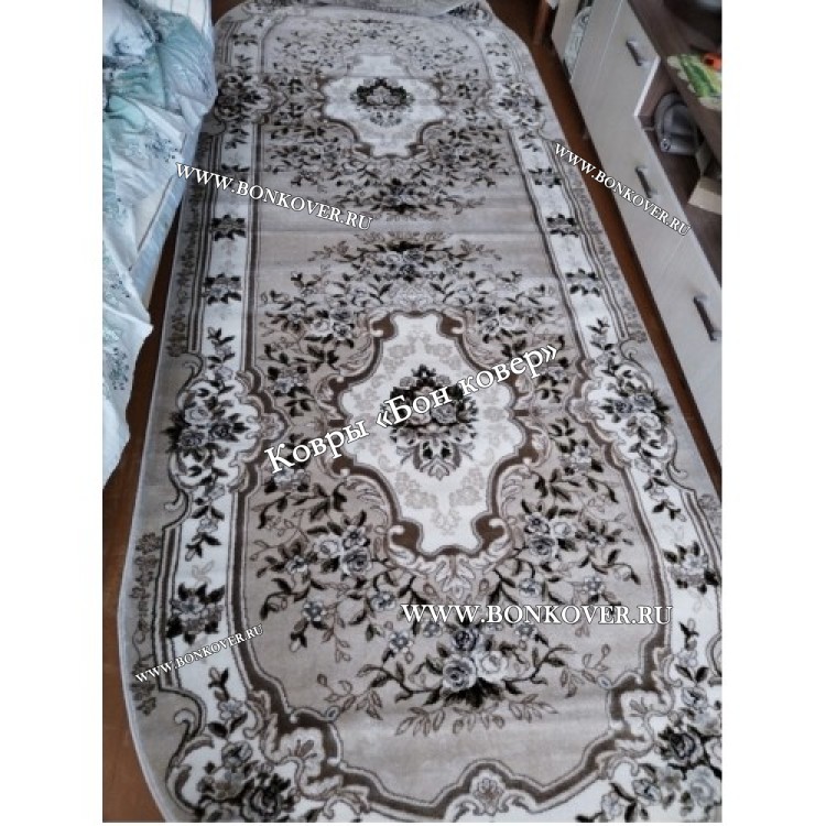 Очень хороший прикроватный коврик коричнево-бежевых тонов, в ближайшее время закажем токой-же размером 1,5×2,3 так-же в спальню. Не зря долго выбирали, только жаль что долго шёл. -