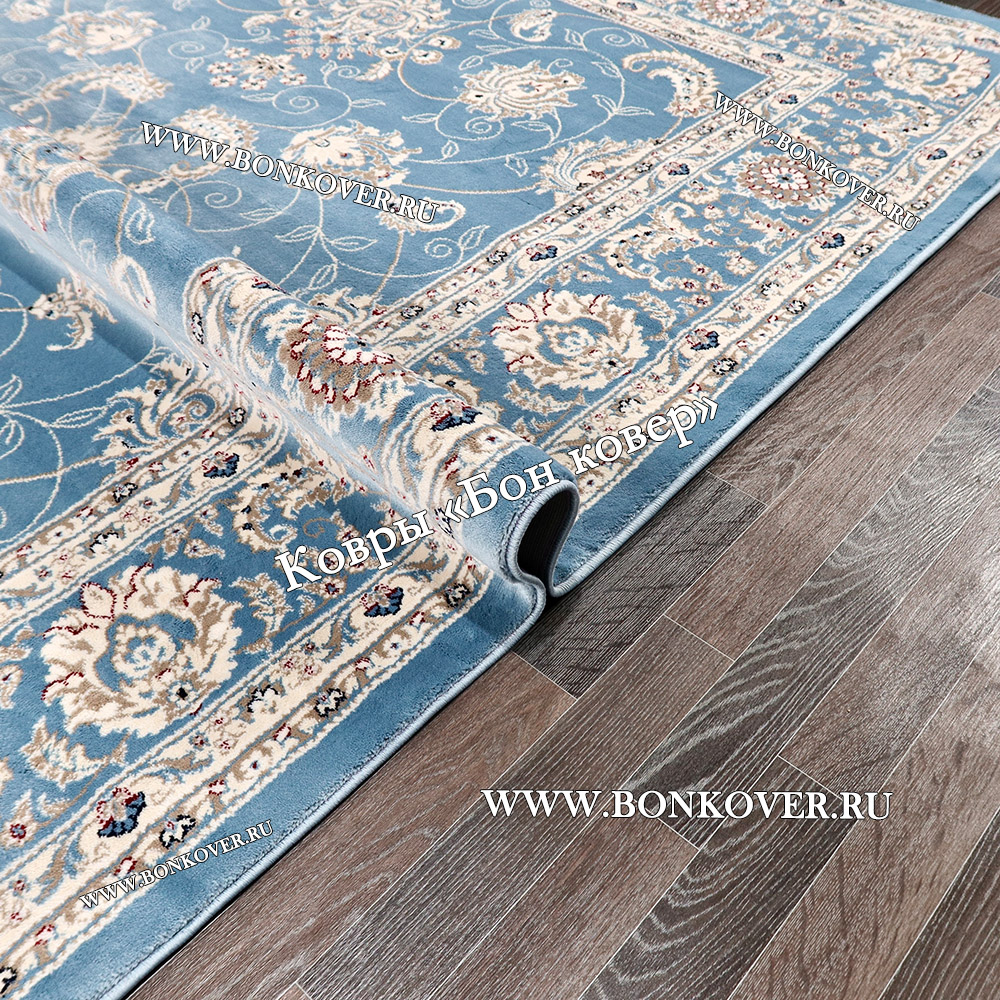 Ковер шикарный, как думалось то и пришло))) Смотришь с одной стороны - почти белый, смотришь с другой -голубой с дымчатым отливом. Короче отличный зачётный коврик, всем рекомендую) Да, совсем забыл про размер. Если честно я думал, что таких размеров не бывает. И тут на тебе, идеальный. Получите и распишитесь)) Всем спасибо.
